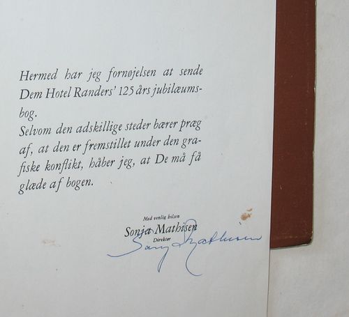 HOTEL RANDERS: 125 års jubilæumsbog 22 juli 1981. 1981. 57 sider med illustrationer i s/h og farver