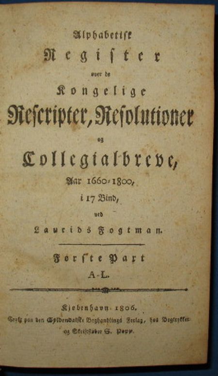 Alfabetisk register over de Kongelige Rescripter, Resolutioner og Collegialbreve Aar 1660-1800.