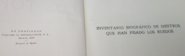 INVENTARIO BIOGRÁFICO DE DIESTROS QUE HAN PISADO LOS RUEDOS.