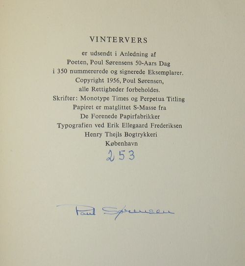 Signeret og dedikeret af digteren - bagest i bogen, Nr. 253/350